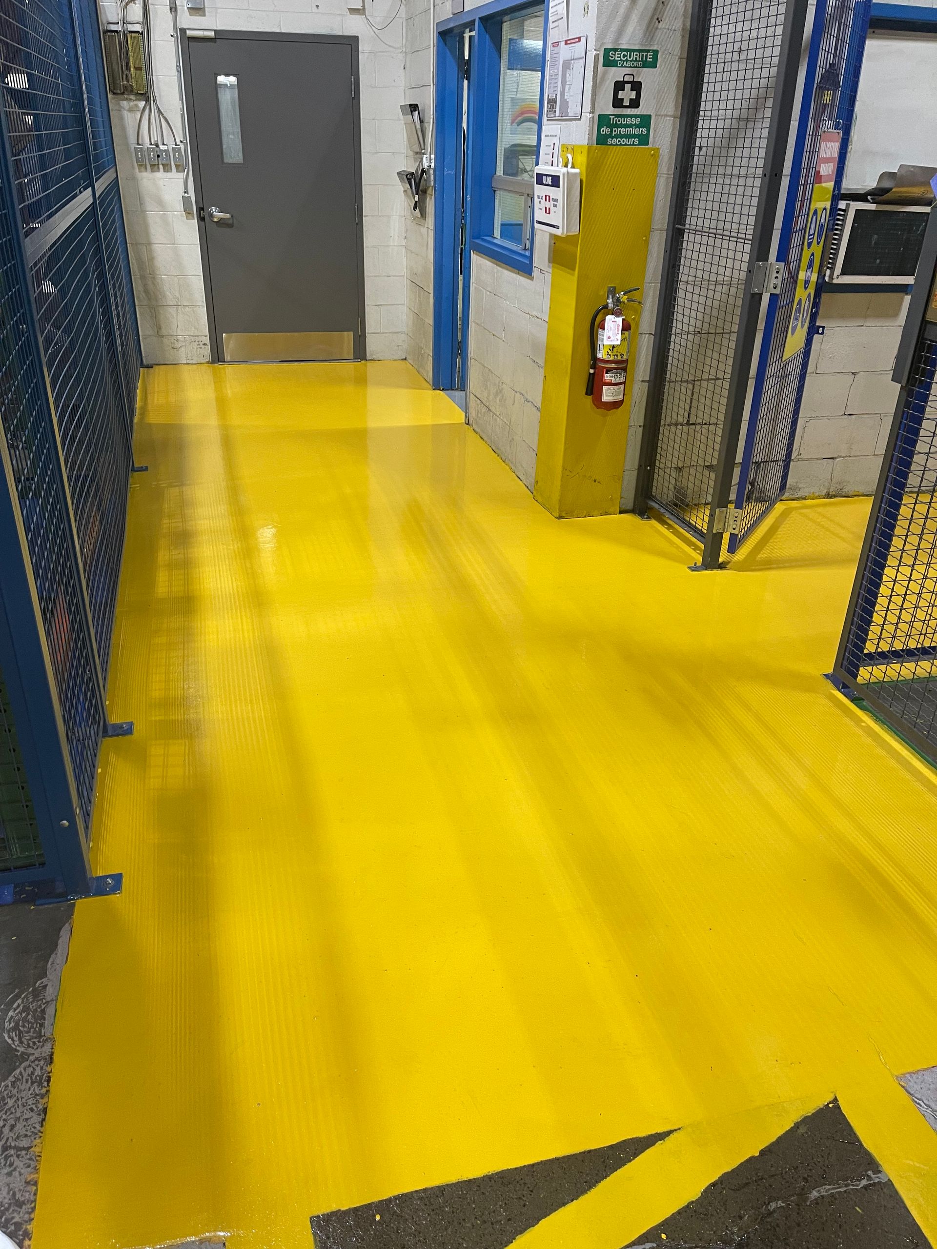 Le zonage par couleur améliore la circulation et la sécurité. La surface lisse facilite le déplacement des chariots élévateurs et le nettoyage en fin de journée.