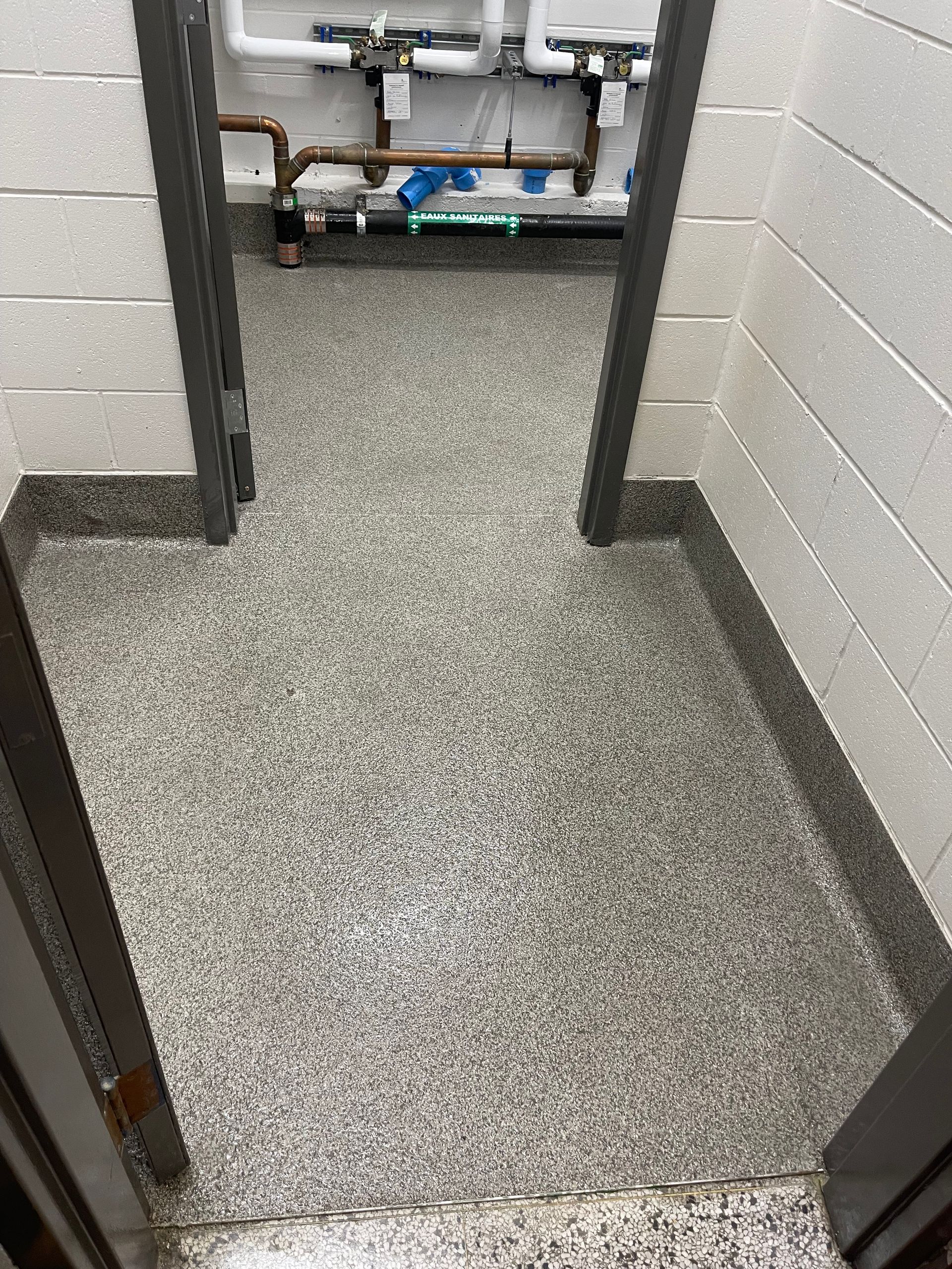 L'époxy quartz répond à un besoin précis : offrir une surface antidérapante où l'eau ou les liquides créent des risques de glissement. Béton Blanchette installe des planchers époxy quartz antidérapants à Montréal, Laval et sur les Rives Nord et Sud.